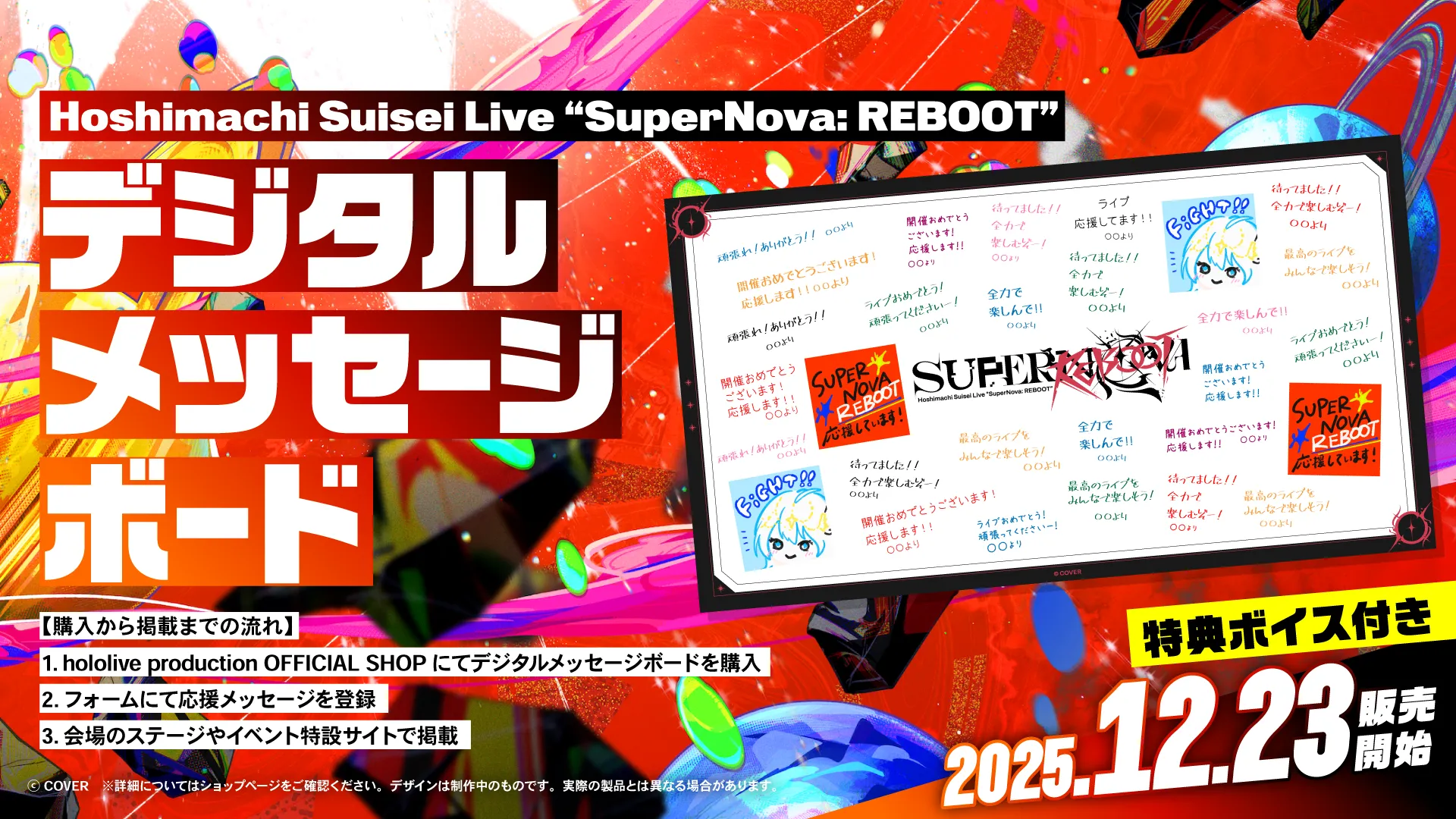 Hoshimachi Suisei Live “SuperNova: REBOOT”に出演するタレントへ向けて応援メッセージをお贈りいただくことができる、デジタルメッセージボードの販売を開始しました!